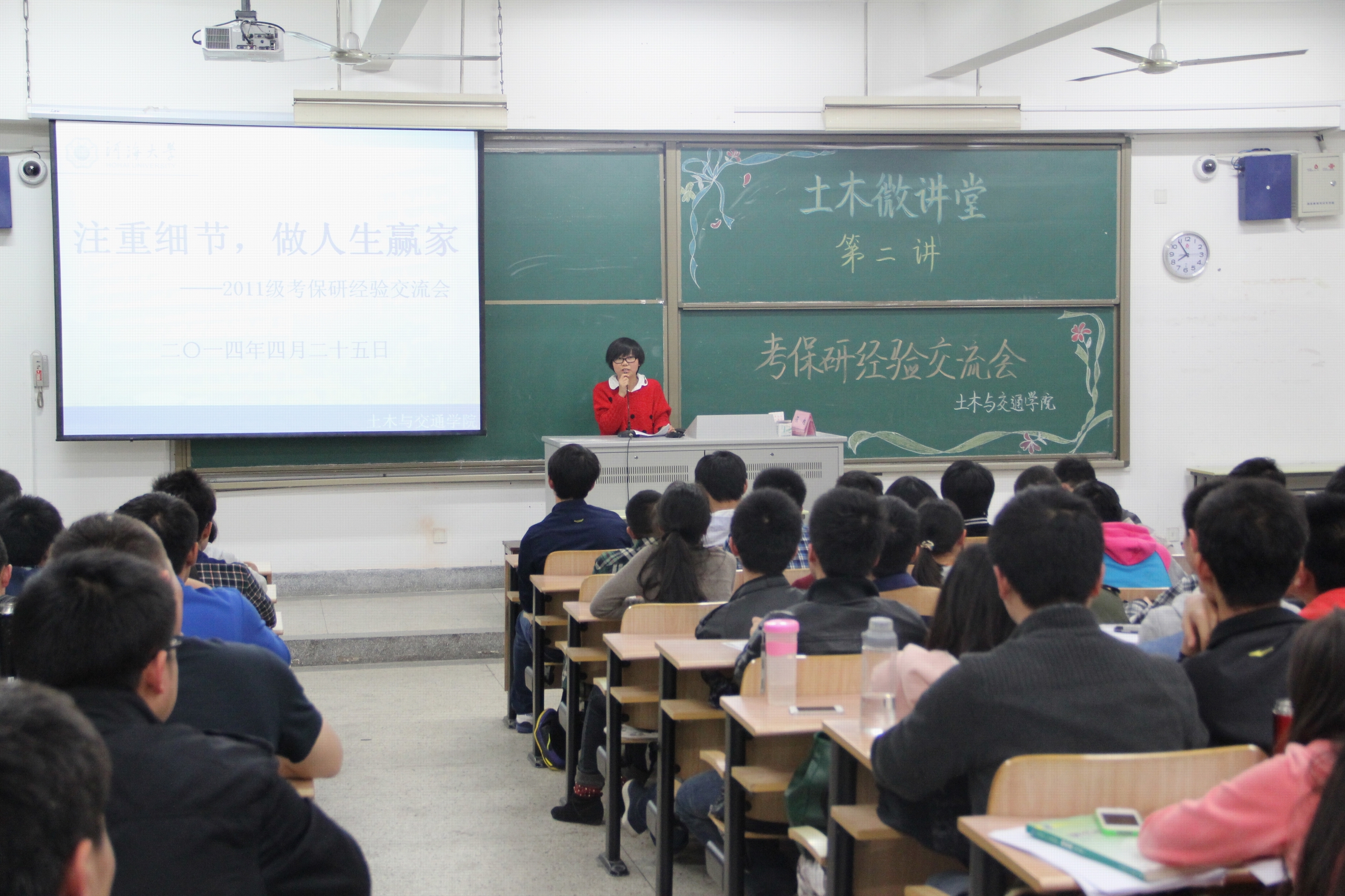 为了帮助同学们确立目标,使同学们熟悉考、保研的具体流程和相关政策,2014年4月25日晚,伟德国际1946土木微讲堂第二讲之考研保研经验交流会在闻天馆303教室召开。本次微讲堂邀请了10级顺利考研、保研的24位优秀学生代表到会与同学们分享交流,就考保研的基本流程、学科复习以及选择导师等事宜为同学们指点迷津。