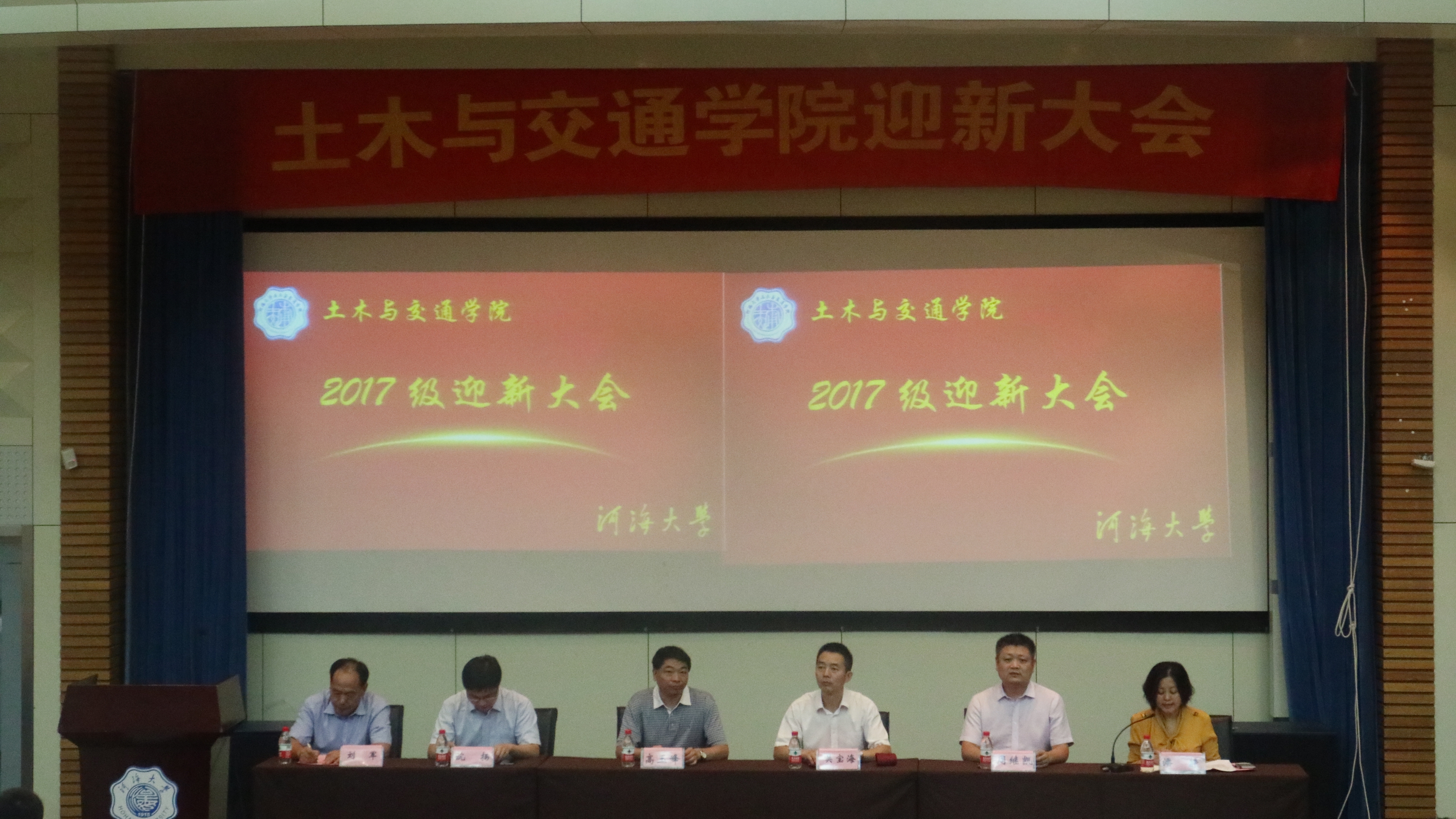 恰逢第33个教师节,新生代表们为17级班导师献花。院长高玉峰教授致辞并从学院的发展历史、学科建设、师资团队、院系特色等方面做了详细介绍,并指出了大学与高中的不同,希望同学们在大学中可以做到关爱自己、关爱父母、关爱集体,在奋斗与奉献中收获难忘的大学生活。副院长沈扬教授介绍了河海土木工程专业和交通工程专业的培养特点以及学院在引导学生积极求学方面所开展的多方努力,列举出许多优秀学长学姐作为同学们学习的榜样。最后沈院长勉励同学们在大学期间要脚踏实地,认真学习,积累知识,实现自己的价值。潘静副书记希望同学们领悟艰苦朴素、实事求是、严格要求、用于探索的校训,坚持“大哉河海奔前程,毋负邦人期”的价值追求,锻造河润万物、海纳百川、精研求真、务实重行的河海特质,在青春的道路上镌刻下土木、交通人奋斗的印迹,成为具有中国灵魂、全球视野、河海特质的栋梁之才!随后,高年级学生代表李升涛与新生们分享了自己对于大学生活的感悟,17级新生代表徐丹丹表达了对大学生活的期待与向往。