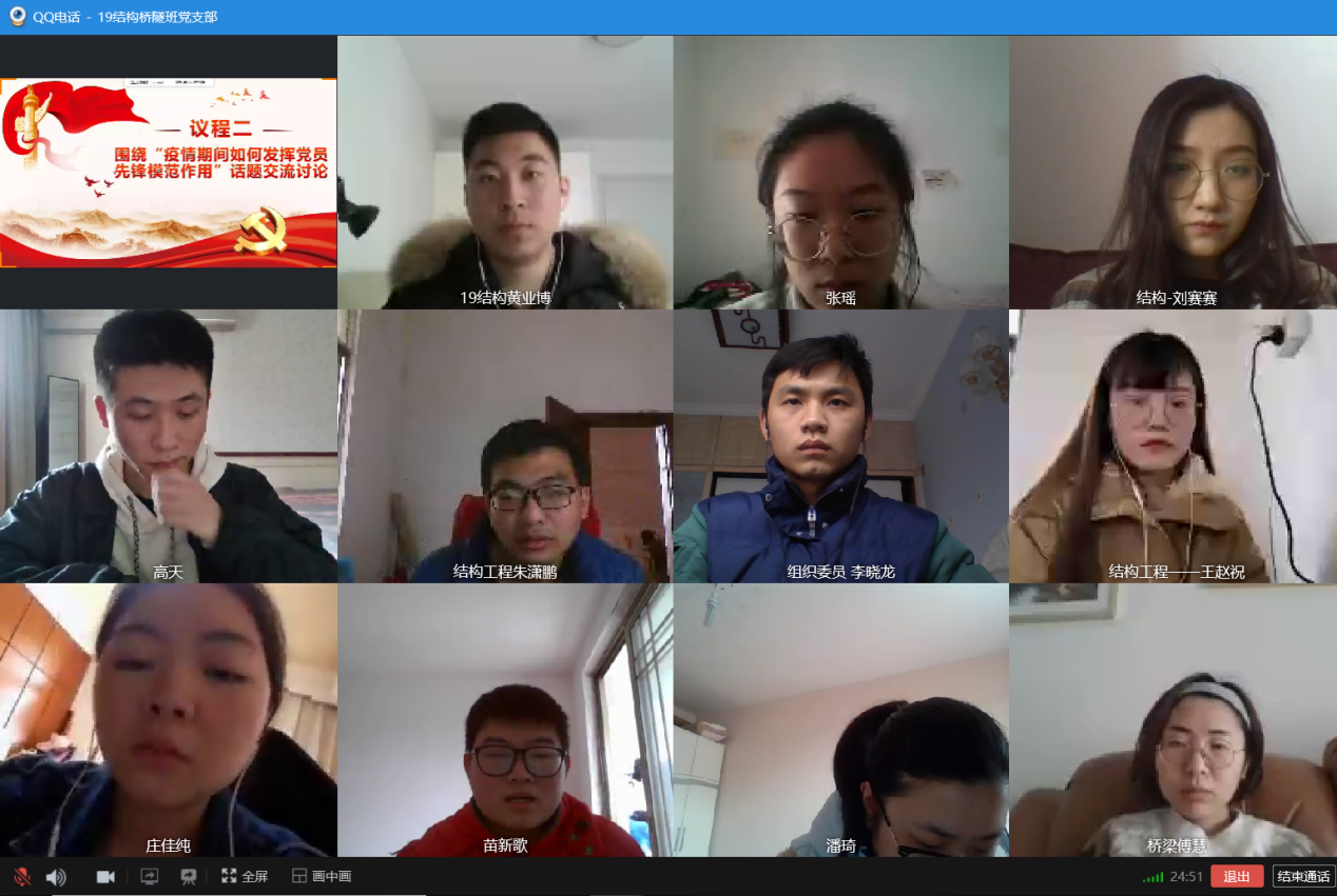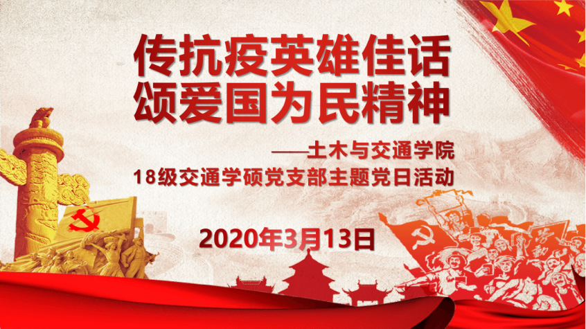 女生四舍社区砼建党支部、2018级交通学硕党支部、2019级结构桥隧党支部、2019级交通学硕党支部等研究生支部,先后开展了以“抗击疫情”为主题的线上党日活动。各支部采取了丰富多样的活动形式,取得了良好的学习效果。通过学习习近平总书记重要讲话精神、同上思政大课,支部成员更加坚定战胜疫情的信念;通过分享家庭防疫方法、开展防疫知识竞赛等,加深了支部成员对抗疫方法的认识;介绍抗疫英雄事迹,分享个人服务社区经历,支部成员传递了正能量,发挥了党员先锋模范作用。