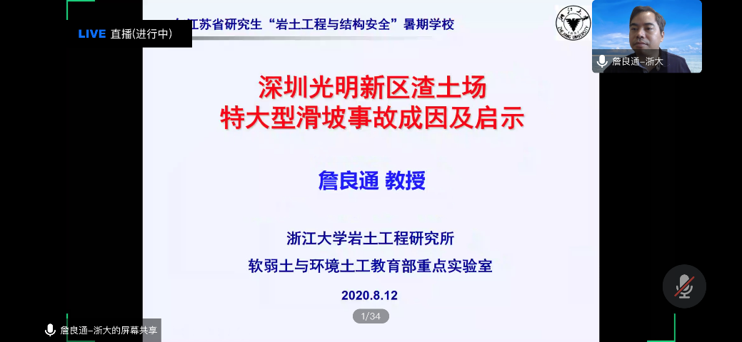 8月12日是2020年江苏省研究生“岩土工程与结构安全”暑期学校的第三天。今天的学术报告由伟德国际1946孔纲强教授主持。