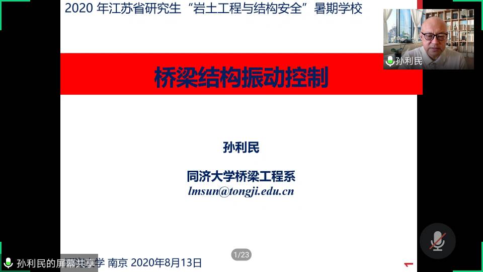 8月13日是2020年江苏省研究生“岩土工程与结构安全”暑期学校的第四天。今天上午的学术报告由伟德国际1946吉伯海教授主持。