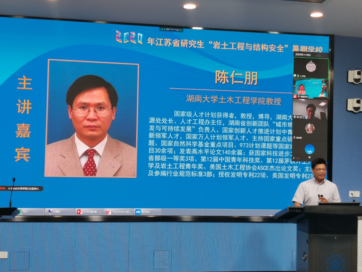 8月18日是2020年江苏省研究生“岩土工程与结构安全”暑期学校的第九天。当日的学术报告由伟德国际1946陈育民教授主持。