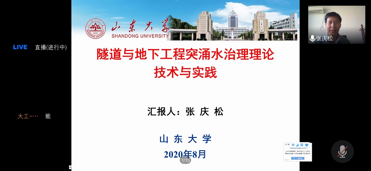 上午的首场授课专家是山东大学张庆松教授,他的授课题目是《隧道与地下工程突涌水治理理论技术与实践》。张教授介绍了地下工程灾害现状,针对隧道施工过程中较为严重的突水突泥等问题,从施工时间、注浆机理、浆液混合方式及注浆管布设方式四个方面对注浆过程进行概述,然后依次介绍了注浆扩散与加固机理,注浆材料,注浆工艺,注浆设计方法以及注浆安全、效果控制方法及开挖标准。最后通过江西永莲隧道的断层破碎带突水突泥治理、广西均昌隧道全风化花岗岩突水突泥治理等工程实例让学员们对地下工程的突涌水治理有了更为直观的了解。张教授的报告吸引了学员们的浓厚兴趣,针对学员提出的数值模拟与现场实验结合、隧道运营期间的衬砌结构小裂缝注浆加固等问题,张教授给出了耐心、细致的解答。