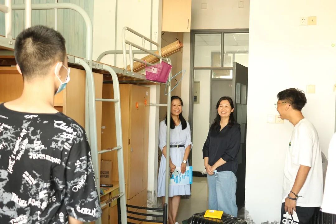 8日上午,高院长、汪书记、潘书记还去到了新生宿舍,了解学生们的住宿情况,与新生亲切交谈,介绍了学院相关情况,了解了新生与家长的实际需求,为初来乍到的小萌新们送来了一份又一份温暖。