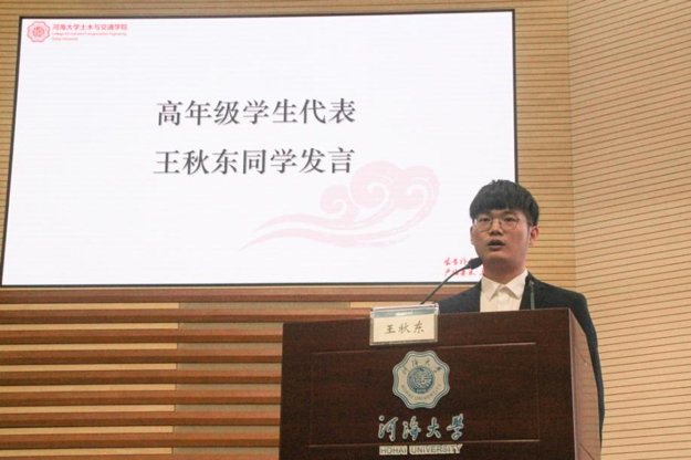 大会的第二项议程,院长高玉峰教授以“浅谈土木与人类文明”为题向新生们讲授开学第一课。围绕“从一个土木人的视角看中华文明”这一话题,高院长列举了一系列由土木人创造的灿烂古代文明与现代文明,生动阐明了土木的最高层次是文明,并结合促成良渚申遗的亲身经历讲述了传承人类文明与土木工程、交通工程的密切联系,勉励同学们要学以致用,不断提高专业素养,做一个自信的中国人。