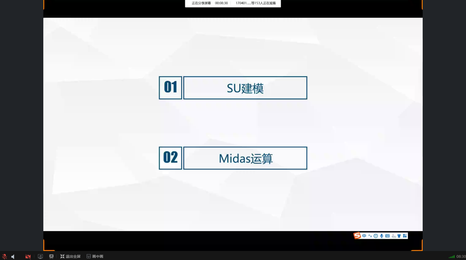 首先,郭方舟同学介绍了一些基础软件的用途和学习方法。之后向同学们简单演示了SketchUp建模和Midas Gen运算的使用方法并强调了软件使用过程中的操作步骤和注意事项,让同学们对这两款软件有了初步的认识与了解,为今后进行更加深入的学习做铺垫。