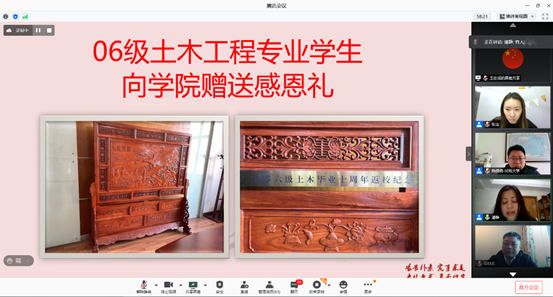 最后,06级土木工程专业各班级校友一一踊跃发言,表达对母校的回忆、同窗的怀念以及老师们的感恩之情。学院领导、老师也与校友们展开交流互动,表达了对校友们的赞许与期待,共同约定待到疫情散去、春暖花开之时,共邀同赴河海,再话校园同窗师生情!