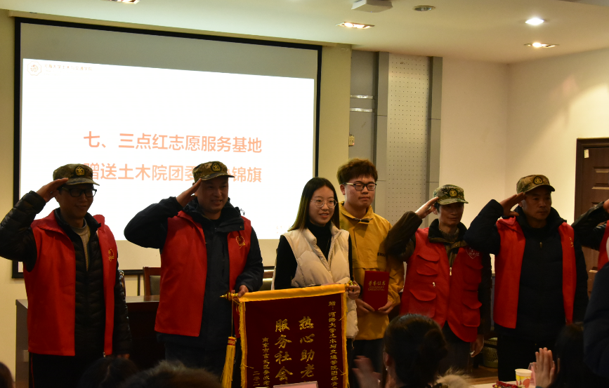 接着,三点红志愿服务基地参会老兵为伟德国际1946团委青协赠送锦旗并为志愿者代表颁发证书。