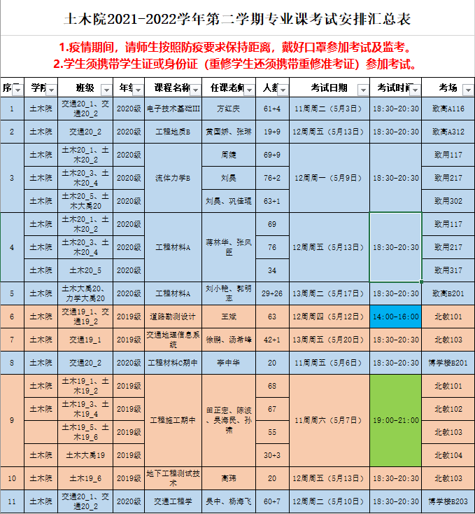 土木院2021-2022-2学期专业课考试安排(第一批)