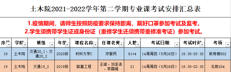 土木院2021-2022-2学期专业课考试安排(第四批)
