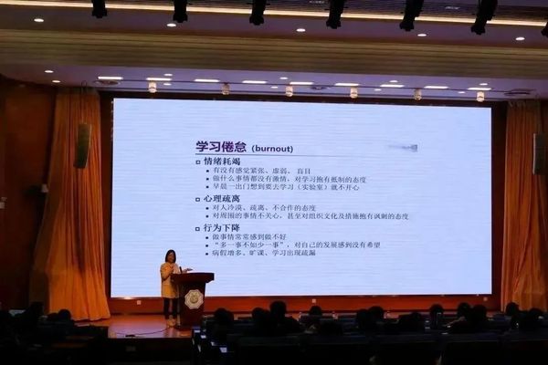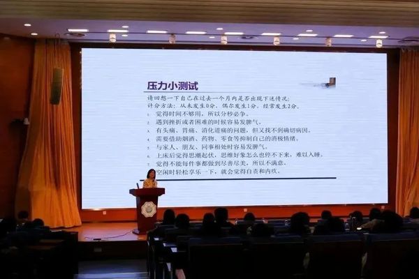 讲座伊始,刘老师以压力小测试为切入点,从“科研压力管理”和“导师沟通那些事”两个方面阐述研究生生活中较为常见的问题,并提出了相应的指导意见。