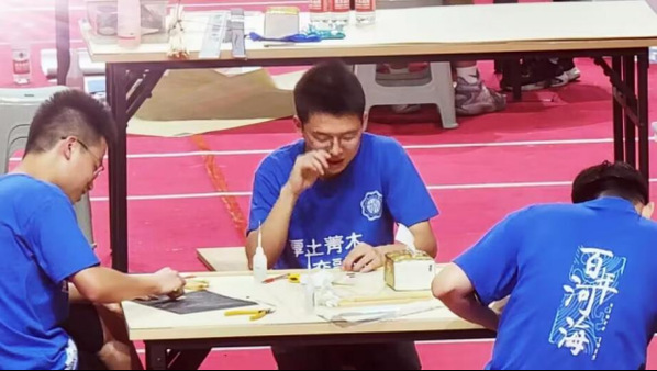 由于省赛的推迟,我们暑假的假期也随之取消。为了能在省赛中获奖,我们在整个假期反复制作反复加载,加载坏的模型也堆成了小山。在这其中我们用掉了百余瓶502胶水,划开了一张又一张的竹皮,剪断了一根又一根的竹竿。衣服裤子上点点滴滴布满了胶水结成的硬块,伙伴的手套上还残留着当时裁剪竹皮受伤留下的血迹,最终也艰难的获得了省赛一等奖,也取得了通往国赛的门票。