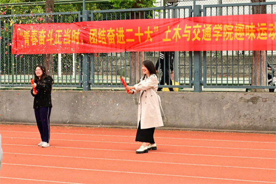为响应党的二十大号召,激发体育锻炼热情,进一步推动健身运动工作,伟德国际1946于2023年4月22日在校本部足球场举行了“青春奋斗正当时,团结奋进二十大”趣味运动会。我院党委副书记王璐老师、研究生辅导员邵文慧老师出席了本次活动,并在开幕式上致辞、鸣礼花,本次活动共吸引了九十余名选手,共计七支队伍参赛。