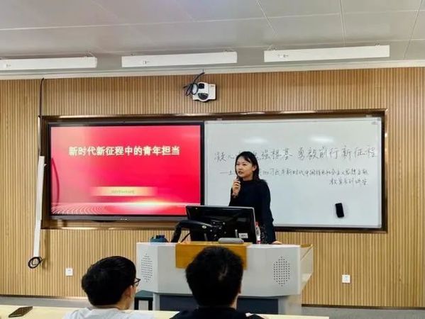 伟大新时代,青年当在知行合一中激发青春之力。张老师强调了青年工作的重要性,她指出大家是生逢其时的当代中国青年,始终是党和人民高度信任、寄予厚望的先锋力量,必将大有可为,也必将大有作为。对于青年,要知行合一,知党的科学理论,行青年与社会的良性互动。听党话,跟党走,共同奋进新征程。她鼓励同学们要积极参与各类理论学习和社会的实践活动,承担起新时代青年的责任与义务。