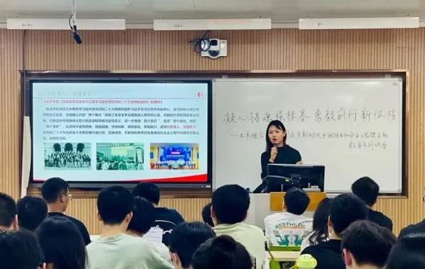 张力力老师带领同学们全方位学习习近平新时代中国特色社会主义思想和党的二十大精神,进一步读懂新时代下青年人的使命,引导同学们深刻体会其重要意义和丰富内涵。