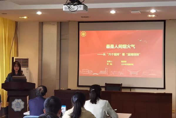 最后,2022级结构桥隧班党支部书记陈卓然分享《最是人间烟火气——从“六个坚持”看淄博烧烤》主题党课。陈卓然同学用“六个坚持”分析了淄博烧烤人间烟火气的背后,是服务型政府统筹兼顾、守正创新的协力。她号召同学们要深刻理解把握新时代十年来的伟大变革和伟大成就,不断从“六个坚持”中汲取奋进力量,以更高的标准、更严的要求,奋力向前冲,自觉为党的事业增光添彩。