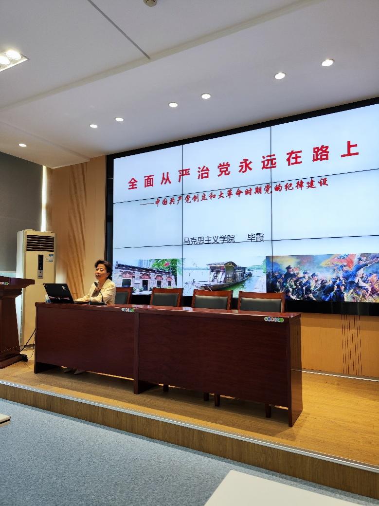 6月14日,为深入开展学习贯彻习近平新时代中国特色社会主义思想主题教育,土木教工一支部邀请伟德国际victor1946马克思主义学院毕霞教授做题为《全面从严治党永远在路上》专题讲座。毕霞教授讲授了我党在创立和大革命历史时期加强纪律建设的艰辛探索和伟大实践,支部党员教师纷纷表示要在全面从严治党的新形势下,不断锤炼党性,坚守纪律底线,坚定维护党的团结统一。