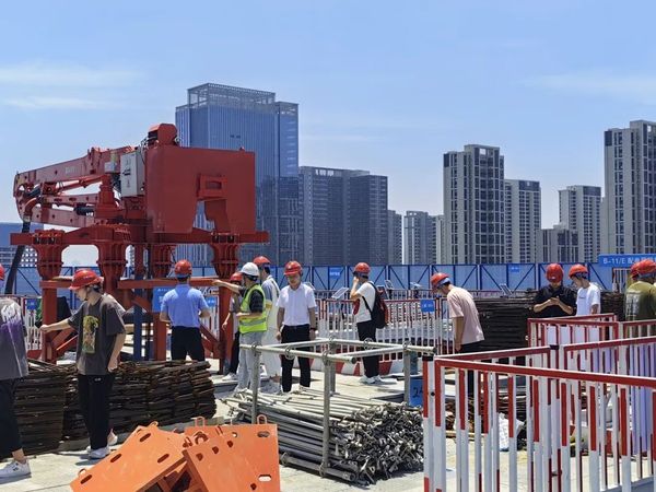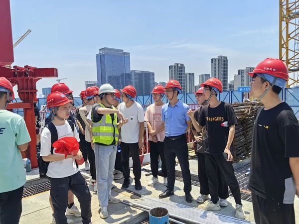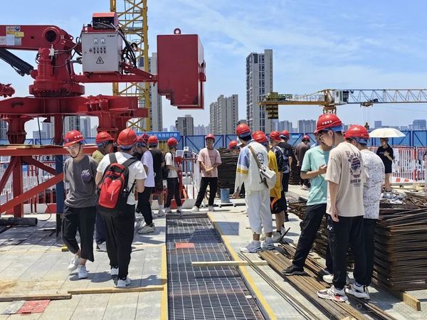 活动期间,全体师生前往江北新金融中心一期项目现场,参观了新时代高新技术建筑机械“造楼机”,对项目实施过程有了更深层次了解,加深了同学们对智能建造技术的了解。