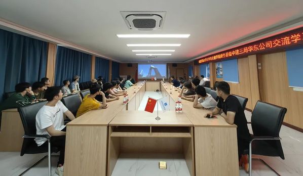 中建三局华东公司人力资源部经理严再航、项目经理梁聪及优秀校友代表出席并开展深入座谈交流。严再航经理介绍了中建三局巨大的发展成就、完善的人才培养体系以及丰富多彩的活动。项目经理梁聪介绍了“造楼机”的结构、原理以及在本项目中的运用。优秀校友讲述了他们的就业经历与感悟,鼓励学弟学妹们奋发有为。