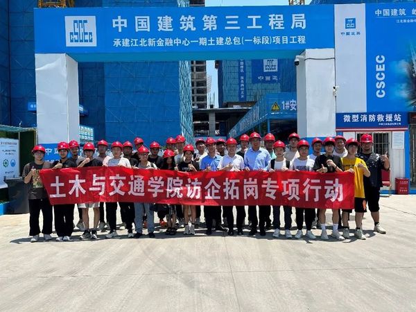 为进一步加强校企合作,深化产教融合, 6月8日,伟德国际19462022级土木六班班导师孙逸飞教授、辅导员高建相老师及土木六班全体同学赴中建三局华东公司开展“访企拓岗”专项行动,并参观了江北新金融中心一期总包项目工程。