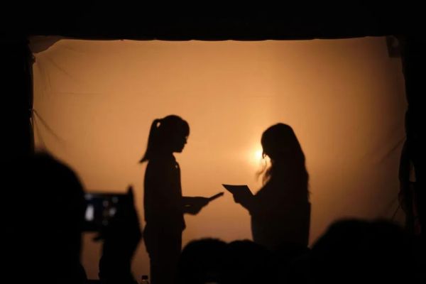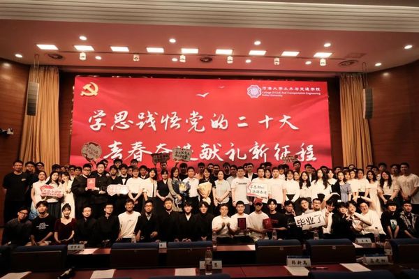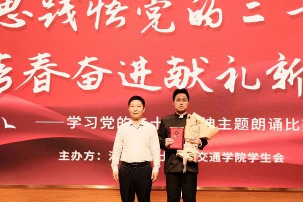 第二篇章——“感悟奋斗精神,凝聚青春力量”。这一篇章里,2019级土木工程专业本科生龙怀熙、李般若等同学以人影戏的形式带来了作品《青春》;2022级本科生张译凝、鲁乔丹等同学带来了精彩的朗诵《红日初升,其道大光》;2019级土木工程专业本科生曹振兴、杨瑞、唐海舰、郑斯哲同学朗诵了作品《永远跟党走,携手向未来》;2019级交通工程专业本科生马俊潇、梁宁晨等同学以舞台剧的形式表演了《何为青年,青年何为》。
