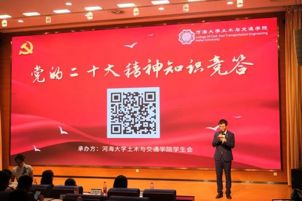 在第一个篇章结束后,现场进行了党的二十大精神知识问答环节,现场的同学们纷纷拿出手机扫码参与答题,参与知识竞答的同时进一步深入学习党的二十大精神。