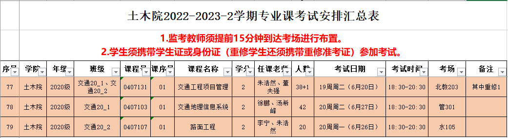 土木院2022-2023-2学期专业课考试安排(第十批)