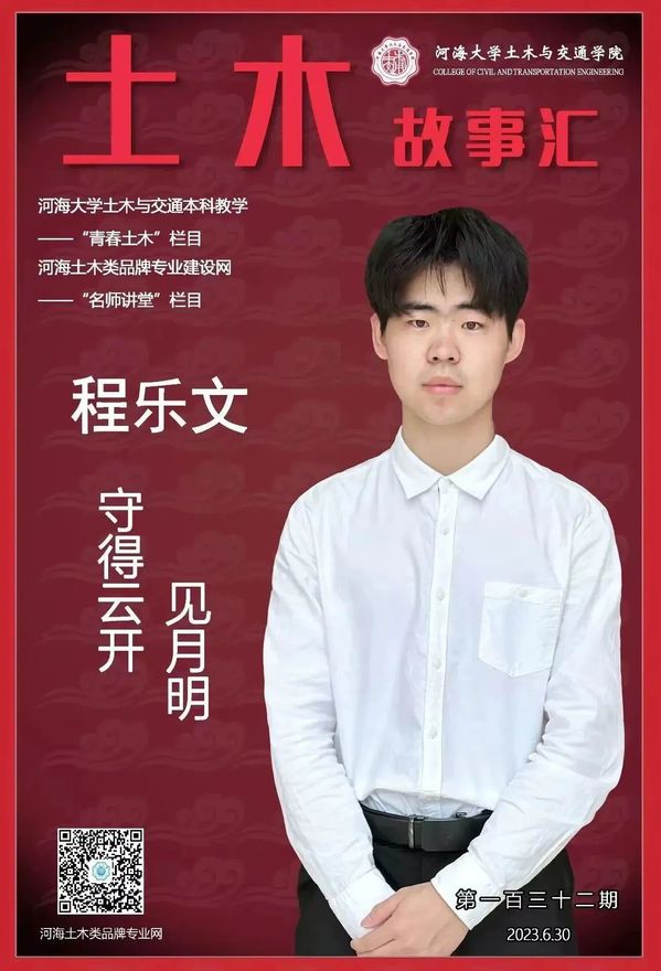 程乐文,男,汉族,中共党员,伟德国际19462019级土木工程专业本科生。曾任伟德国际victor1946团建指导员、伟德国际1946团委学生副书记、江宁负责人、2019级年级学习委员、2019级土木三班学习委员。现推免至伟德国际victor1946岩土工程专业攻读硕士学位。