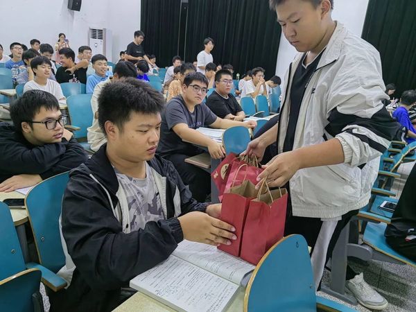 王书记对参会学生积极进取的态度给予了充分肯定,希望新生始终秉持着我校“艰苦朴素、实事求是、严格要求、勇于探索”的校训。此外还特别提出大学时期是每个人的价值观、人生观、世界观形成的关键时期,希望每个同学都能在脚踏实地学习的同时,感受、内化、传递世界的美好,展现新时代好青年的精神风貌。最后,王书记为参会同学发放月饼,大家合影留念。