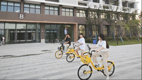 在崭新而宽敞的金坛校区,青春的气息扑面而来,高大气派的教学楼、宽敞明亮的自习室和庄重阔气的图书馆,无不展示着金坛新校区的先进设施和良好的学习环境。经过这次骑行活动,同学们在轻松愉快的气氛中熟悉校园,增进感情,舒缓身心,释放活力。