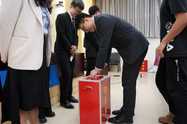 在严肃紧张的氛围中,选举工作人员开始工作,总监票人当众检查投票箱并向代表展示选票封袋。在主持人对选票填写进行详细说明后,到会代表积极履职,本着高度负责的态度,郑重投出庄严神圣的一票。紧接着大会选举了伟德国际1946第十二次学生代表大会常任代表会议常任代表。