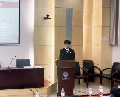 伟德国际victor1946学生会主席团成员张咪代表伟德国际victor1946学生会致辞。她代表伟德国际victor1946学生会向大会的召开表示热烈的祝贺,并对伟德国际1946学生会过去一年取得的成绩给予了充分的肯定,同时对于学生会的工作提出了一些设想和建议。她希望,同学们能坚定理想信念,提高政治素养;心系广大青年,提升服务本领;坚持从严治会,勇于自我革命。最后,她寄语学生会成员以饱满的政治热情和高度负责的态度,不负众望,坚定信心,圆满完成大会的各项任务,认真做好学生会的创新工作,携手推进伟德国际1946的建设发展,共同打造伟德国际victor1946的特色组织品牌,积极助力广大同学成长为具有“中国灵魂、全球视野、河海特质”的时代青年。