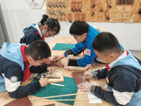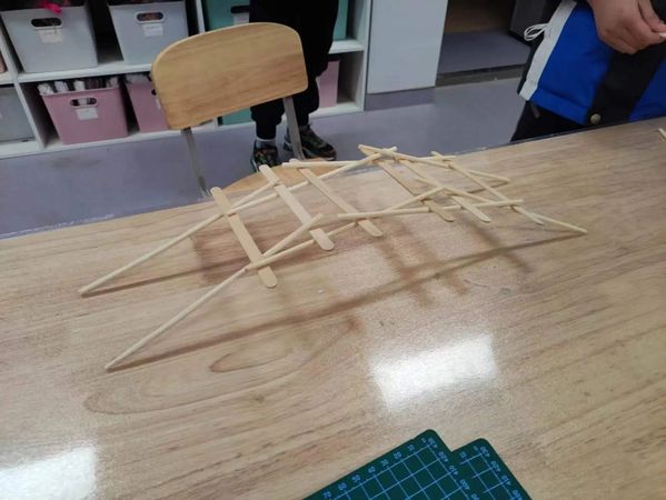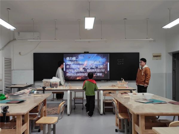 随后,为了让小朋友们将理论与实际结合起来,志愿者们带领他们现场进行了模型制作活动。从丈量尺寸到打磨材料,再到搭建结构框架,志愿者们耐心指导,一组一组教小朋友们制作模型。在欢声笑语的氛围中,小朋友们兴致高涨,很快就完成了自己的小模型。