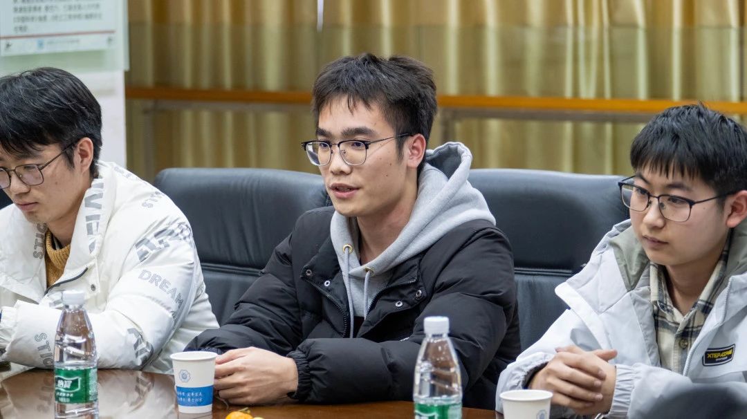 座谈交流环节,同学们依次介绍了自己的留校原因以及留校期间的生活、学习和科研计划。汪建新书记建议同学们在留校期间多与家人沟通联系,强调同学们要当好自身安全的“第一责任人”,服从学校管理,加强个人安全防范,如遇突发事件,第一时间与导师和辅导员反映。希望同学们顺利完成科研和竞赛任务,在学校度过一个安全、充实的寒假。