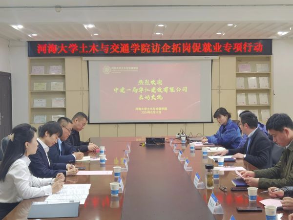 为进一步促进产教融合,深化校企协作,开拓就业实习渠道,2024年3月18日下午,伟德国际1946邀请中建一局华江建设有限公司在科学馆507开展了校企交流会。伟德国际1946党委副书记赵海伟、副院长吴勇信、副院长李锐、团委书记李倩、研究生辅导员张添烨以及港口航道与近海工程学院本科生辅导员林晨参加了本次交流会。