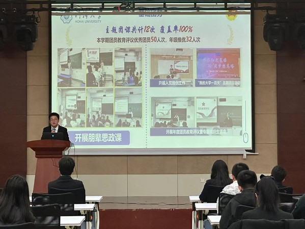首先,年级团支书林燃同学代表年级团总支,就智慧团建、基础团务、寒假社会实践、PU第二课堂、活动宣传等方面进行了工作汇报,对上学期工作内容进行总结与反思,并合理规划了本学期工作安排。他表明:团总支将会在新的学期中做好组织、督导、协调工作,始终秉持“全心全意为同学服务”的宗旨,为伟德国际1946建设添砖加瓦。