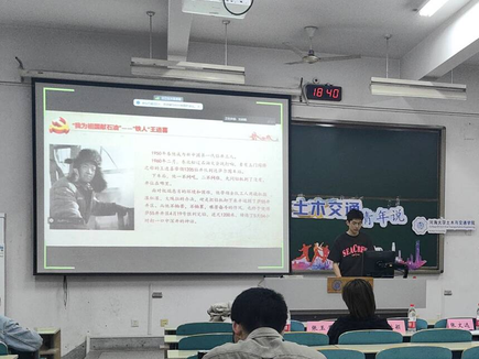 随后,主讲人张玉莹同学分享了高炉卫士孟泰的事迹。面对苏联政府停止对我国供应大型轧辊的情况下,孟泰没有放弃,反而勇挑重担、迎难而上,组织技协积极分子开展了厂际协作联合技术攻关。他面对攻坚克难坚持不懈、勇于创新的精神深深烙印在了同学们的脑海里,并为他用一生所坚守、诠释的共产党员和工人阶级的担当奉献所深深感动。