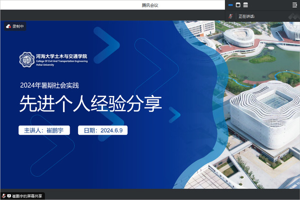 为了增强同学们对实践过程的了解,本次宣讲会还邀请到了2021级本科生程佳良、2022级本科生崔鹏宇两位同学进行经验分享。他们结合自身实践经历,从实践准备工作、实践投稿推荐以及实践结项注意事项等方面向大家详细地讲述了暑期社会实践各方面的要求。