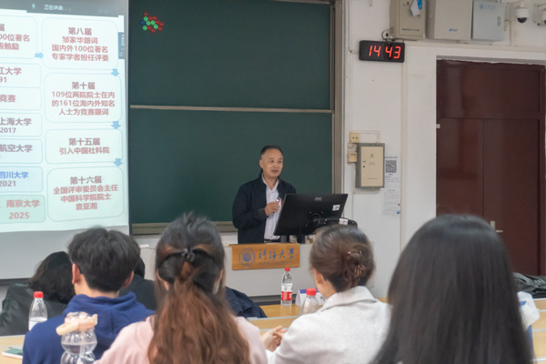 分享会上,林岭老师从竞赛主办、竞赛组织、往届历程和竞赛成果等方面进行了赛事简介,帮助大家更好地了解竞赛信息,接着,林老师围绕“挑战杯”全国大学生课外学术作品大赛,为大家深入解读了参赛理念、组别重构、评审要点、申报材料、评委构成等调整内容,并就参赛方法论、申报表填写、PPT制作等方面进行了细致而深入的指导。同学们认真聆听,对赛事的调整和参赛理念有了进一步的认知,对其意义进行了深入的思考。