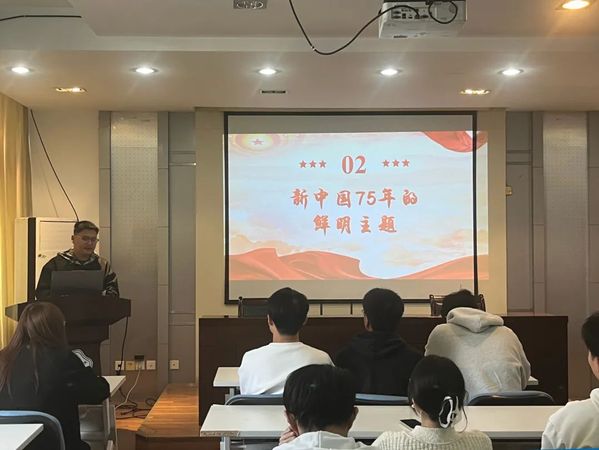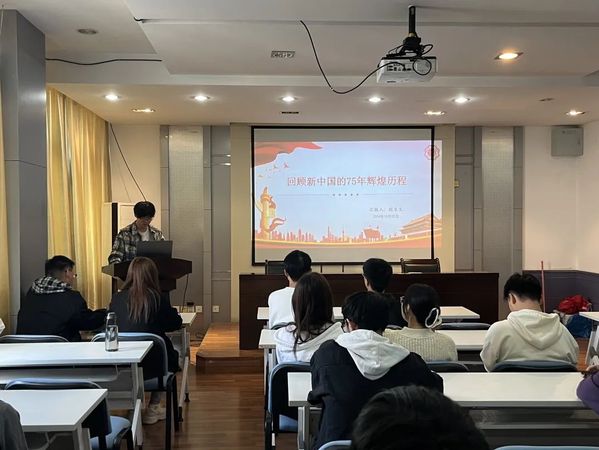 伟德国际1946研究生会主席团成员程乐文同学给同学们作了“回顾新中国的75年辉煌历程”的相关报告。程乐文同学从中国特色社会主义的开创、经济成就的飞跃、社会进步的实质改善三个方面展开,向同学们介绍了新中国成立75周年来的成就。新中国75年的历史是党和人民弥足珍贵的精神财富,为我们在新征程上以中国式现代化全面推进强国建设、民族复兴伟业提供了深刻的历史启迪。