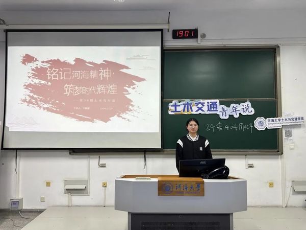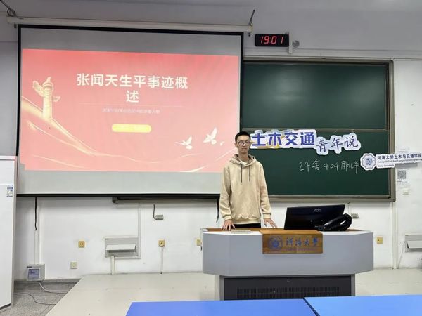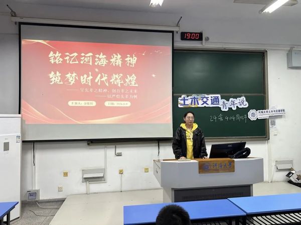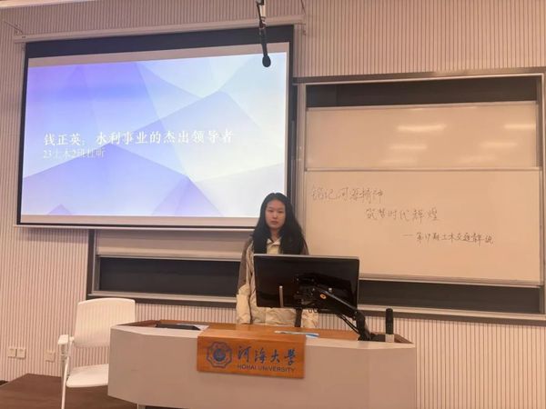 随后,杜昕同学向同学们介绍了钱正英院士在革命工作中的杰出成就和为新中国成立作出的重要贡献。在新中国成立后,钱正英院士积极投身于水利建设中,对国家的水利水电工作产生了深远影响。钱正英院士在国家危难之际挺身而出,用自己的才华和努力推动祖国的水利科技迈向新的高度。钱正英院士实事求是、坚持真理的科学精神鼓励着同学们在未来的学习道路上要勇于直面困难、追求真理。新时代的河海人也将秉承这一精神拼搏进取,自强不息。