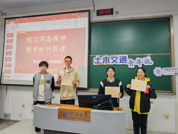 其次,王婉涵同学讲述了我国著名工程力学家、中国科学院院士徐芝纶的壮丽人生。在新中国成立后,徐芝纶院士参与创建华东水利学院,为新中国培养了无数人才,桃李满天下。同学们从徐芝纶院士波澜壮阔的一生里感受到了何为“鞠躬尽瘁,死而后已”,这种精神激励着同学们不断突破自我,追求理想,为祖国的事业和社会的发展贡献自己的青春力量。