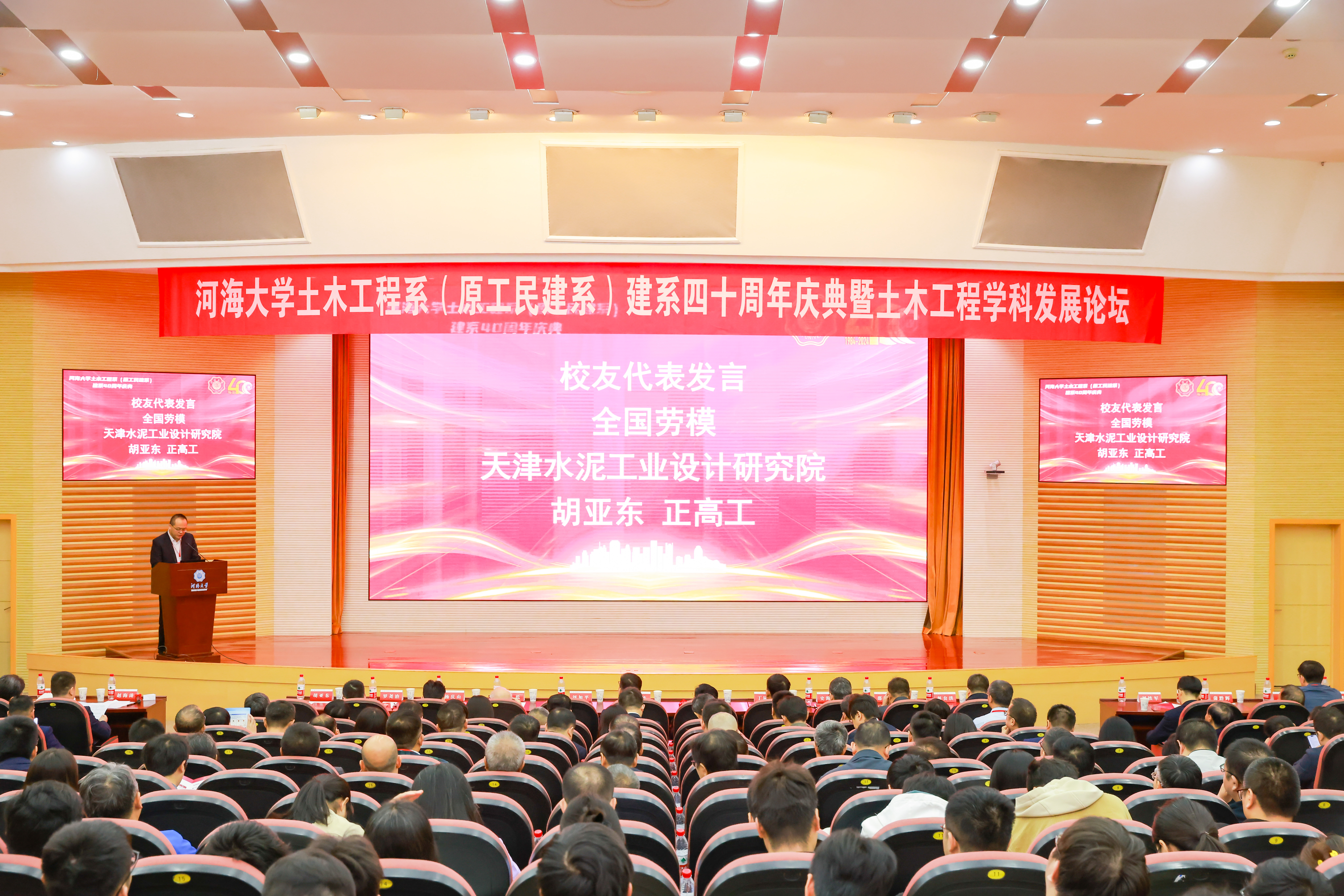 大会宣读了杰出校友代表周学文的贺信。兄弟院校代表、浙江大学建筑工程学院院长罗尧治教授上台致辞,向伟德国际victor1946土木系成立四十周年致以最热烈的祝贺。