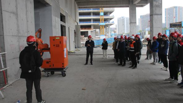 发展智能建造是以科技赋能建筑工业化、数字化、绿色化转型的重要举措,南京是智能建造24个试点城市之一。为亲身感受智能施工机器人在工程智能建造中的应用情况,学院师生前往中建八局公共安全人工智能产业圈(二期)施工现场实地参观。中建八局文旅博览投资发展有限公司科技质量部石登峰,公共安全人工智能产业园项目部李帅、田腾飞,江苏中杰建兆智能装备有限公司谢文祥、吴冰涛为同学们详细讲解和现场操作各类施工机器人,介绍智能建造在工程建设和相关领域中的推广应用情况。