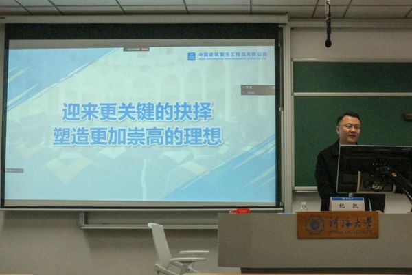 纪凯先生首先介绍了中建五局一公司,重点分析了建筑行业的现状及发展趋势,详细介绍了行业现阶段面临的挑战。根据自身经历及所见所闻,与同学们分享职场心得体会,强调心态在职场中的重要性。此外,纪凯先生还着重讲解了个人简历制作与面试注意事项。希望同学们提高自身专业素养、培养专业技能,抓紧时代潮流风口,在职场上走得更远。