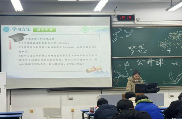 接着,主讲人吴乐蕊以互动的形式针对大学中该如何学习展开分享,她先对大学的“学”字下定义,认为“学”的含义是学问,在学习中应当明确对基础知识、专业知识、相邻学科知识三个方面的学习,并分享了接受学习与发现学习两方面的学习方法,以及个人在学习方面的心得体会。例如,高数学科学习应多利用网络资源,注重习题练习,学思结合;工图应增强练题、复盘、几何能力,坚持+方法=掌握。同时她希望大一的同学们能积极解决在学习中遇到的问题,收获满意的成绩。