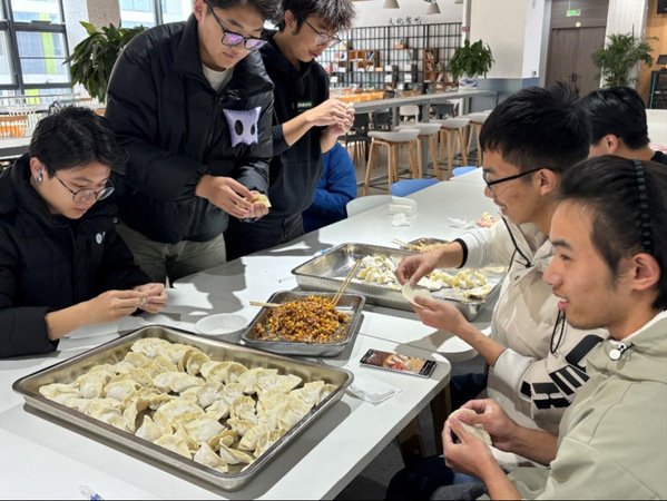 饺子煮好后,大家围坐在一起,品尝着自己亲手包的饺子,每一口都是家的味道,每一口都饱含着同学之间浓浓的情谊。