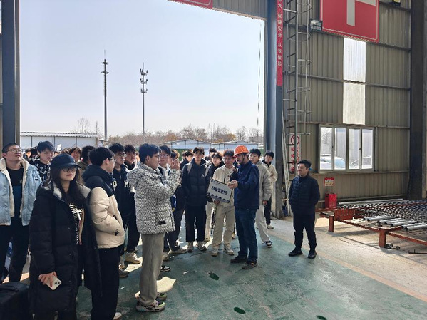 学院师生前往南京市公共工程建设中心宁盐高速公路南京段工程项目现场。工作人员热情接待到访师生,带领大家参观宁盐高速公路展厅和钢筋加工配送中心,近距离观察布料机、钢筋切割机、钢筋调直机等机器现场运作。参观过程中,学院师生与项目部工作人员深入交流,围绕当前行业发展现状、先进技术运用、人才需求情况等问题展开热烈讨论,期待校企双方能够更加深入开展产教研合作,赋能双方供需对接。