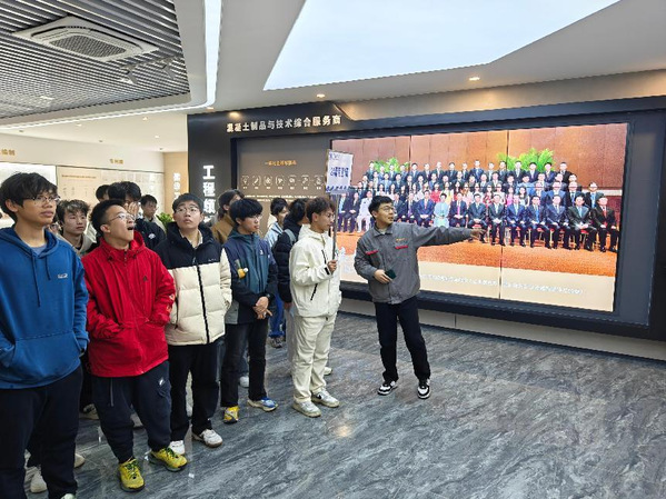 午后,师生们前往建华控股集团。建华控股集团工作人员带领师生参观集团总部展厅及智慧建造技术中心。通过企业宣传片和沙盘模型,师生们直观了解了建华集团在新型建材研发、绿色建筑、智慧交通等领域的创新成果。在智慧建造技术中心,工程师以某地标性桥梁项目为例,展示了BIM技术、装配式施工工艺在工程全生命周期中的应用,引发同学们对“科技赋能传统行业”的深入思考。