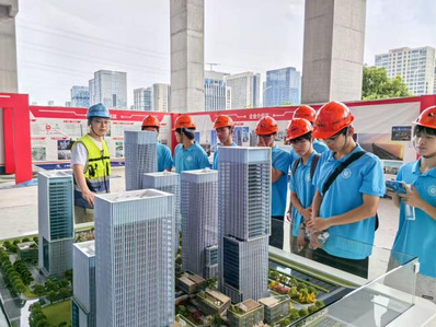 交流结束后,实践团成员在上海建工一建集团的带领下,实地参观了 G07 地块东区施工总承包项目,亲身感受了智能建造与绿色施工在实际项目中的应用。通过此次访问交流,实践团成员对建筑行业的发展趋势有了更为深刻的理解,也为未来的学习与实践明确了方向。